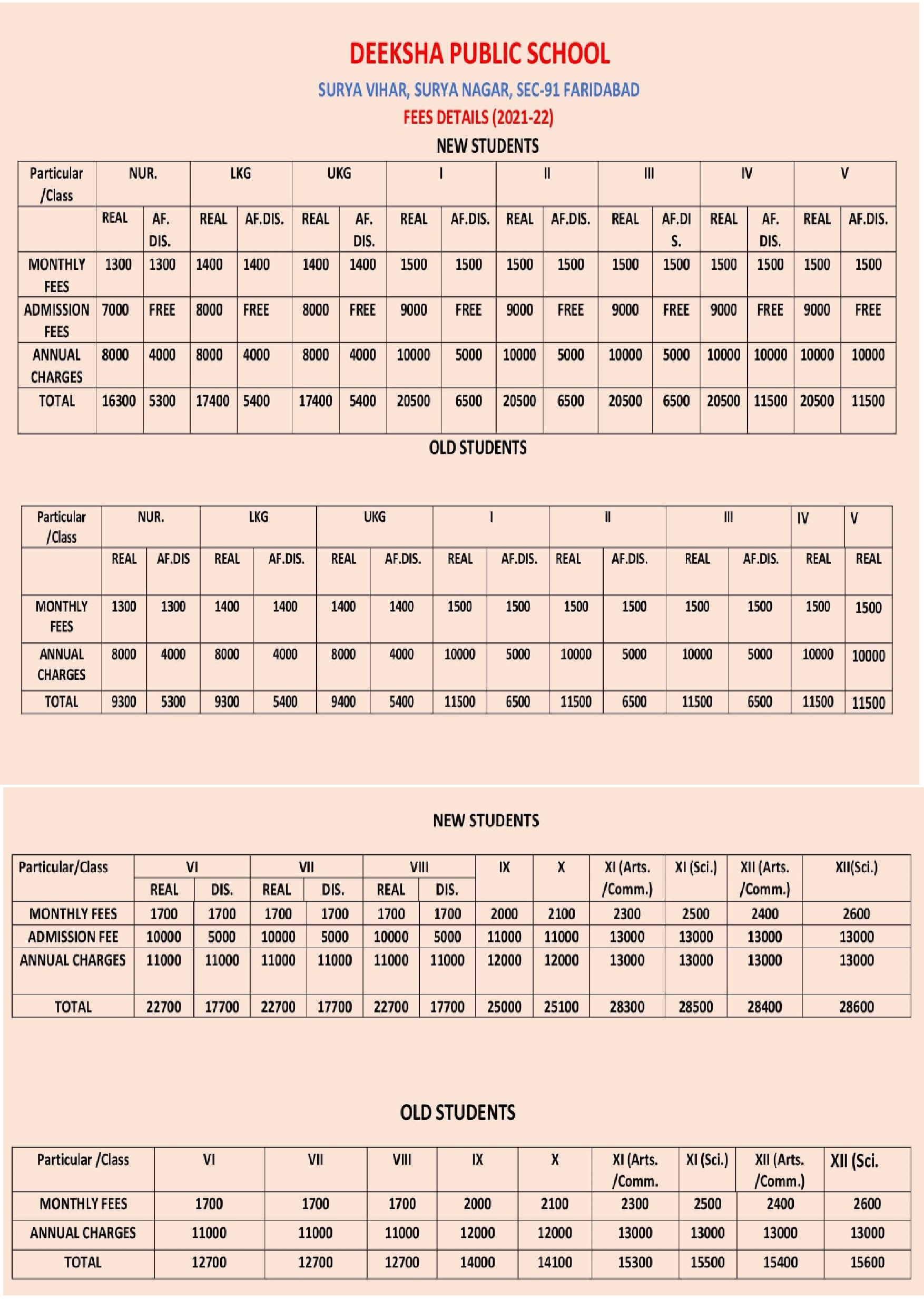 Fee Structure View